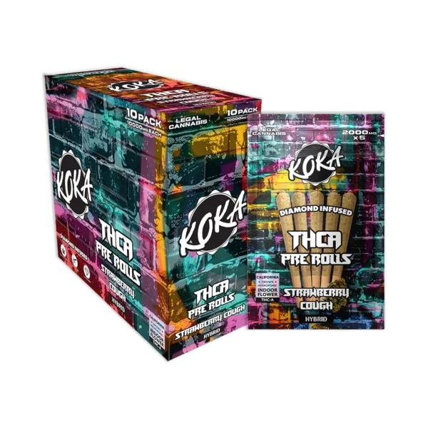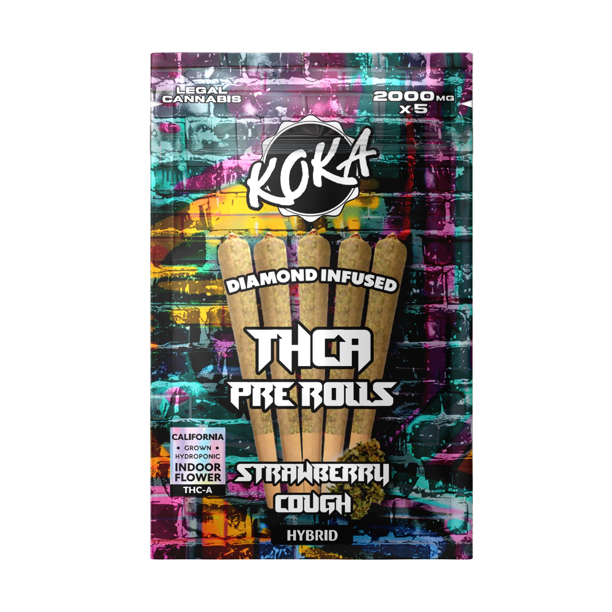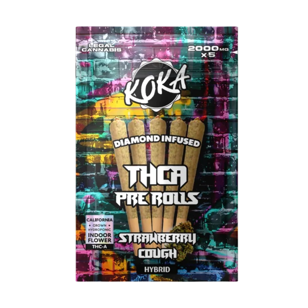THC-A Diamond Infused Pre Rolls | Strawberry Cough | Hybrid – 2000mg (5 cones per pack)